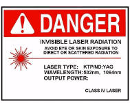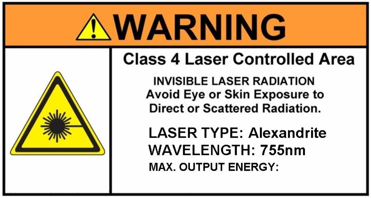 The following Laser Warning Signs are courtesy of Dan Little from WorldLink Biomedical, and our own Technical Director. They're free. Just print them out and edit them with your laser's specs, or hand write in the power or energy output. You can find these Power/Energy specs on an FDA label on the back or side of your laser. Use the info from the main laser - not the aiming beams. You can contact Dan at DanLittle60@gmail.com. - Send him a thank-you if this helps you.